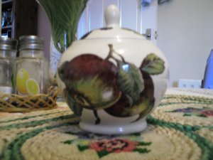 This cute marmalade pot is holding the Seville marmalade that I made last night. Very tasty. Here’s the recipe.