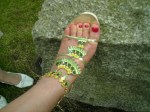 Just got back from our Niece’s wedding. Don’t they make a lovely couple. I’m the one in the hat. Doesn’t everyone look great? Our Mum made a smashing job of the flowers in the church. That’s Mum and Dad under the arch. I spotted the best man having a quiet ciggie. Not the actual wedding best man, but the best one for me. Me and my Sister are with Mum and Dad, then there’s one of our lovely daughter with her brother. One special person couldn’t be there as he was moving, and lives too far away. Being as his Sister visited recently, I can include his photo too. I think one of little Brixham popped in there by mistake. It is special though, so it can stay there, just for fun. Hope you enjoy these. I just heard that I’m on Eddie Walsh’s long list in the ‘Nobody will ever know’ competition. So hoping that sweep will bring luck. Though looking at these pictures of my lovely family, I think I’ve got all the luck I need. Don’t you just love those spangly shoes?