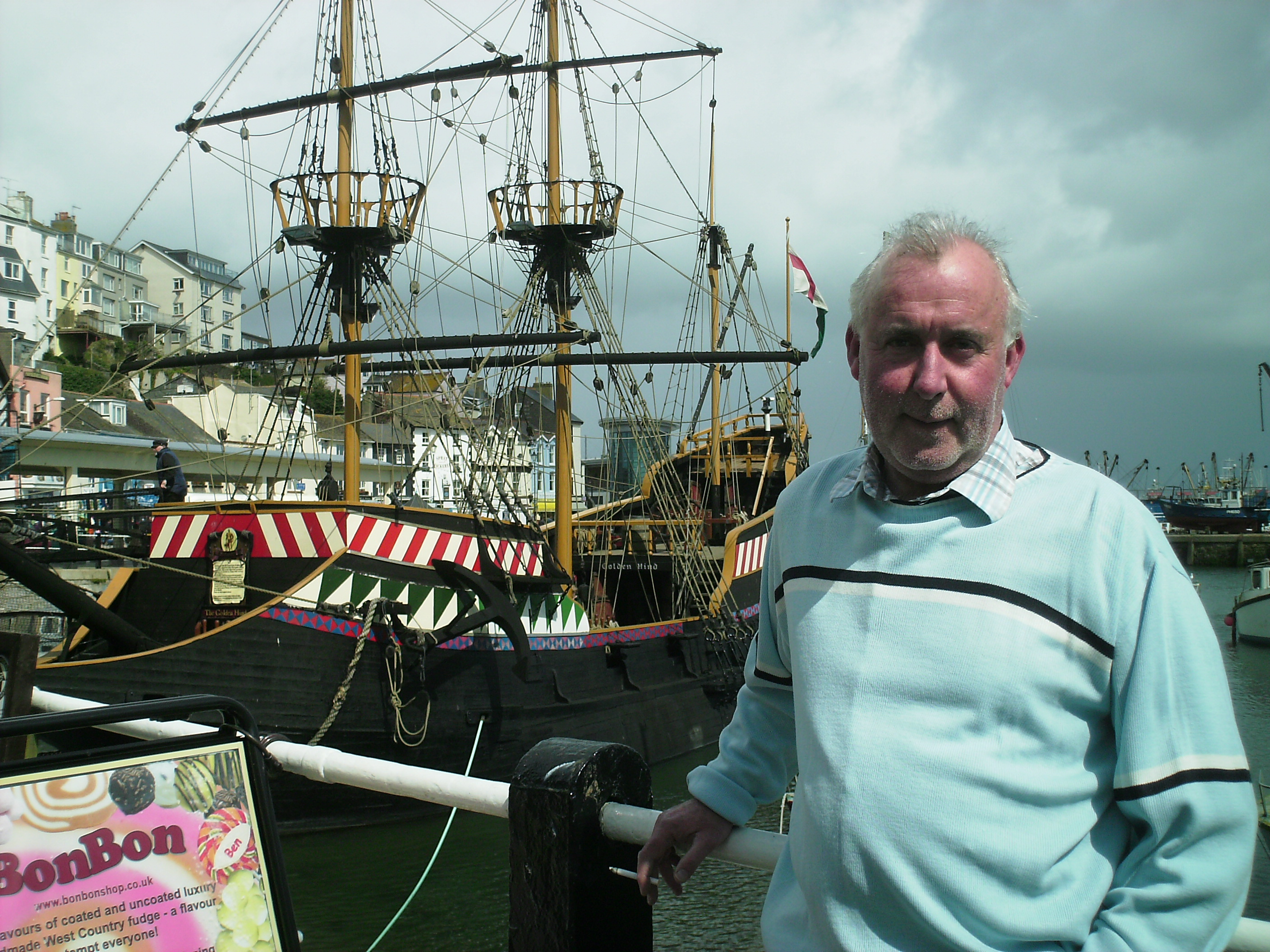 Most of you will recognise Sir Frances Drake’s ship there in the harbour. You can see all the treasures he brought back from his travels, like rubies, diamonds and gold. Over twelve million pounds worth. Then he was knighted; he was in fact a pirate. No wonder the Spanish sent their ships after him.