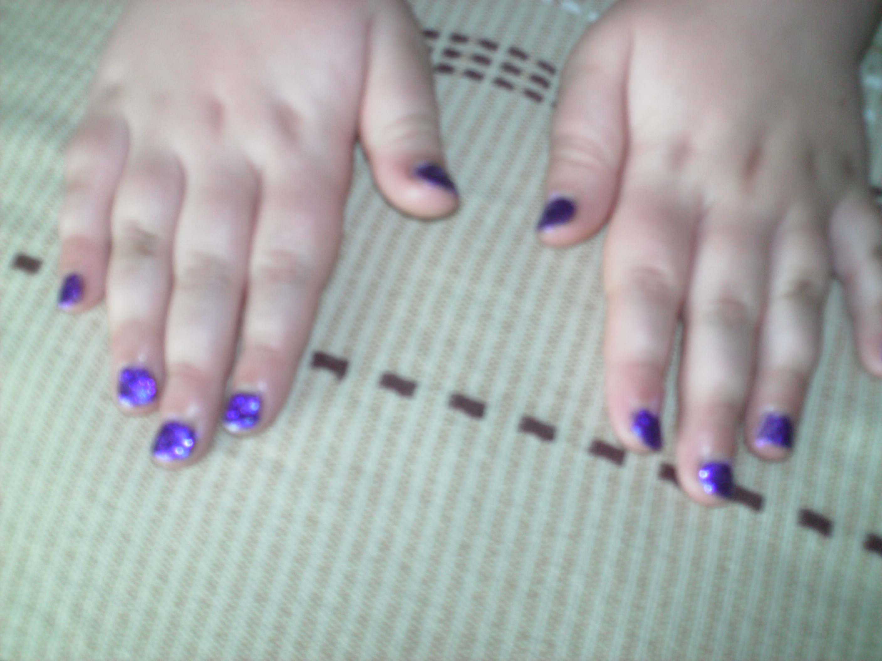 Now, off to put my c.v. in at a local shop. Fingers crossed. And, yes, they’re purple glittery nails on fingers crossed.